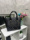 Чорна - літери - стильна сумка-трапеція на блискавці з переплетеним золотим ремінцем (1544-7)